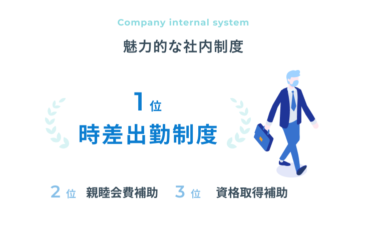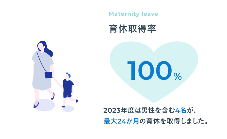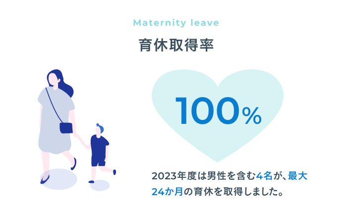働き続ける中で、ライフスタイルの変化は付き物。男性・女性問わず取得実績のある育休制度をはじめ、全面的なサポート体制が整っています。勤務時間の調整も可能なので、お子様の送迎に合わせて帰宅する男性社員の姿も。労働組合の存在も、安心して働ける一因です。