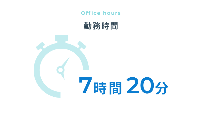 毎日の勤務時間が7時間20分と短く、残業も少ないため、仕事後の時間を有意義に使えます。